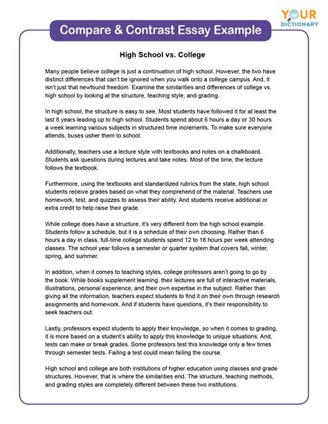 Read compare and contrast essay sample college Doc